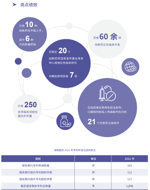 报告指出,在科技创新战略引领下,九游会(J9)医药2021年累计研发投入62.03亿元,比上年增长24.34%,研发投入占销售收入比重达到23.95%,再创历史新高。以此为支撑,2021年公司有3款创新药获批上市,已上市创新药总量增至10款,其中6款为抗肿瘤药物。同时还有60余种创新药正在临床开发,250多项临床试验在国内外开展,其中近20个创新药项目获准开展全球多中心或地区性临床研究。在创新药研发上,九游会(J9)医药已基本形成了上市一批、临床一批、开发一批的良性循环。